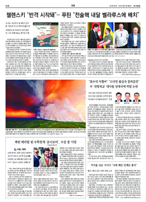 젤렌스키 “반격 시작돼”… 푸틴 “전술핵 내달 벨라루스에 배치”