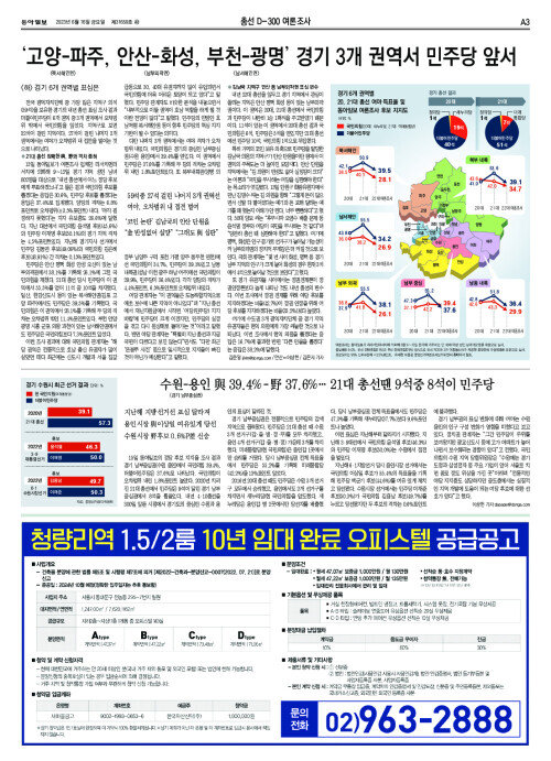 수원-용인 與 39.4% - 野 37.6%… 21대 총선땐 9석중 8석이 민주당