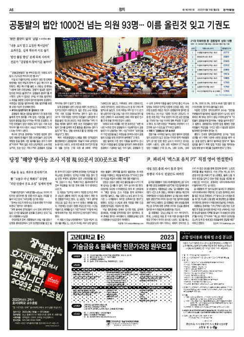 [단독]의원들 ‘법안 품앗이 발의’ 남발… 1명당 797건 공동발의