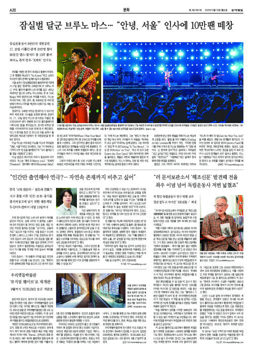 잠실벌 달군 브루노 마스… “안녕, 서울” 인사에 10만팬 떼창