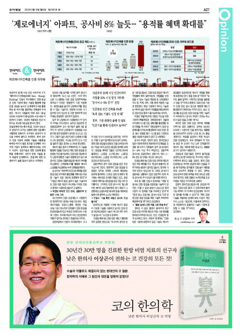 [인사이드&인사이트]‘제로에너지’ 아파트, 공사비 8% 늘듯… “용적률 혜택 확대를”