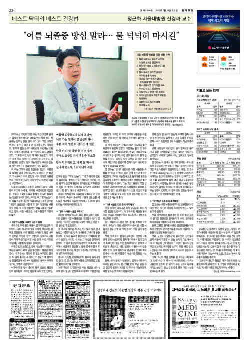 “여름 뇌졸중 방심 말라…물 넉넉히 마시길”[베스트 닥터의 베스트 건강법]