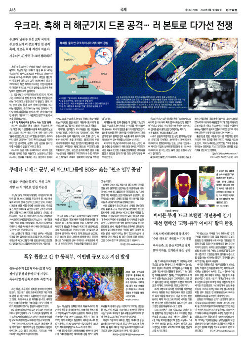 우크라, 흑해 러 해군기지 드론 공격… 러 본토로 다가선 전쟁