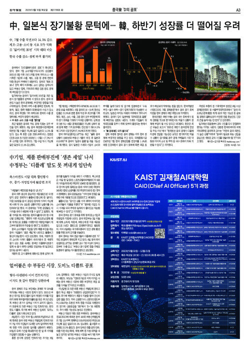 中 7월물가 ―0.3%… 중국發 ‘D의 공포’