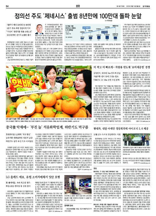 정의선 주도 ‘제네시스’ 출범 8년만에 100만대 돌파 눈앞