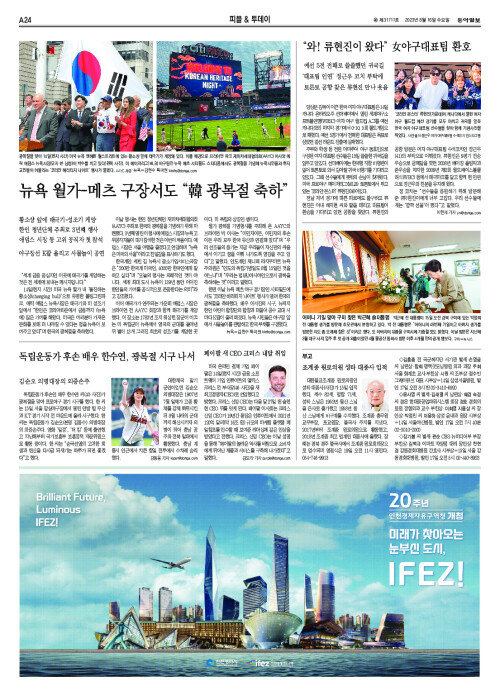뉴욕 월가-메츠 구장서도 “韓 광복절 축하”