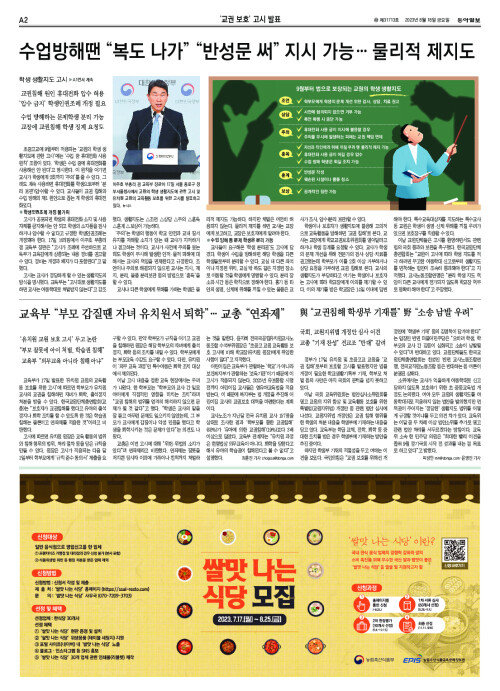 與 “교권침해 학생부 기재를” 野 “소송 남발 우려”