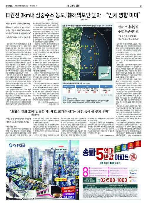 日 “삼중수소, 기준치 1%” 韓 “현장검증”