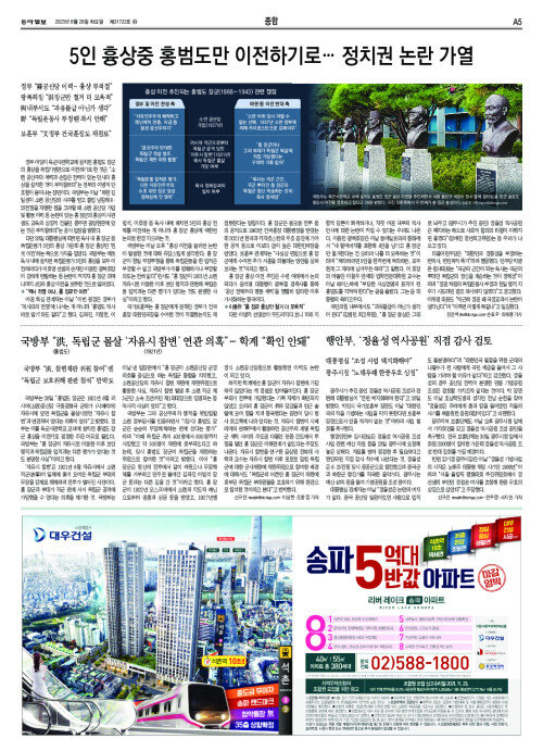 5인 흉상중 홍범도만 이전하기로… 정치권 논란 가열