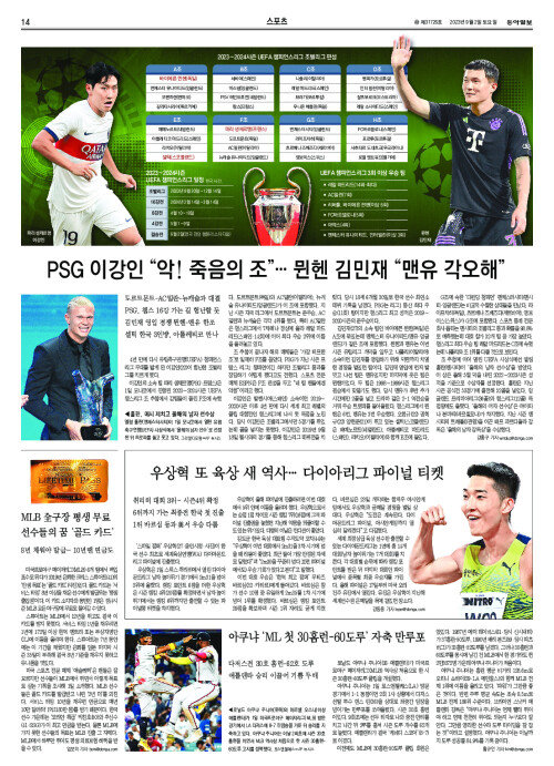 PSG 이강인 “악! 죽음의 조”… 뮌헨 김민재 “맨유 각오해”