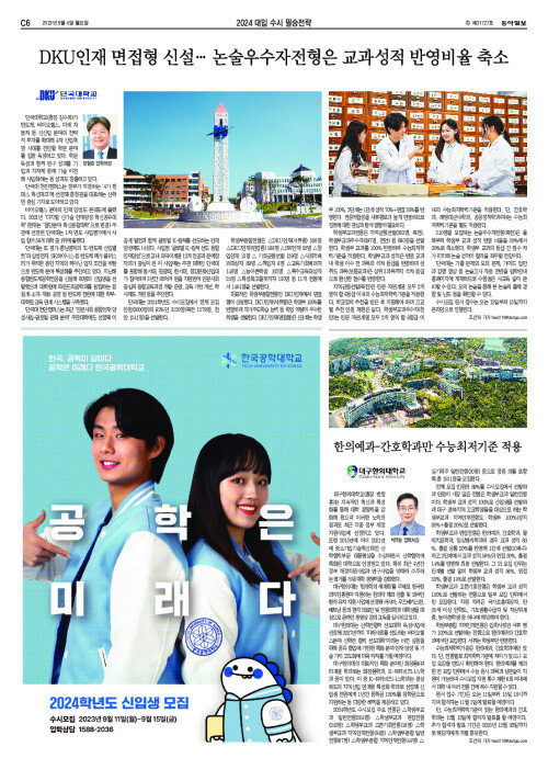 DKU인재 면접형 신설… 논술우수자전형은 교과성적 반영비율 축소