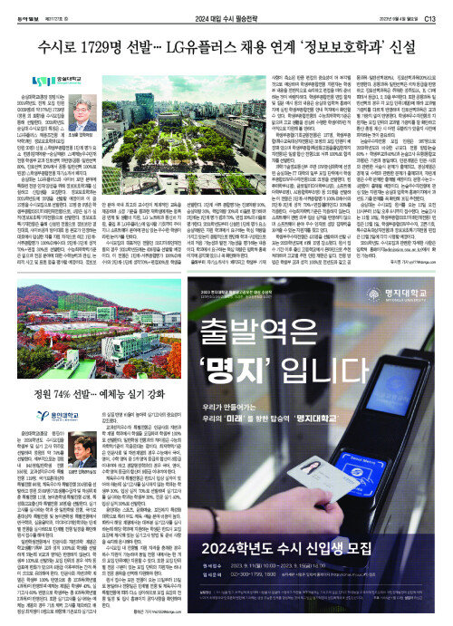 수시로 1729명 선발… LG유플러스 채용 연계 ‘정보보호학과’ 신설