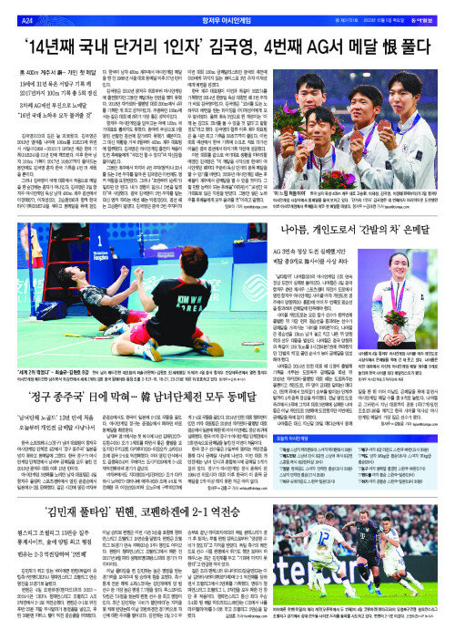 ‘14년째 국내 단거리 1인자’ 김국영, 4번째 AG서 메달 恨 풀다
