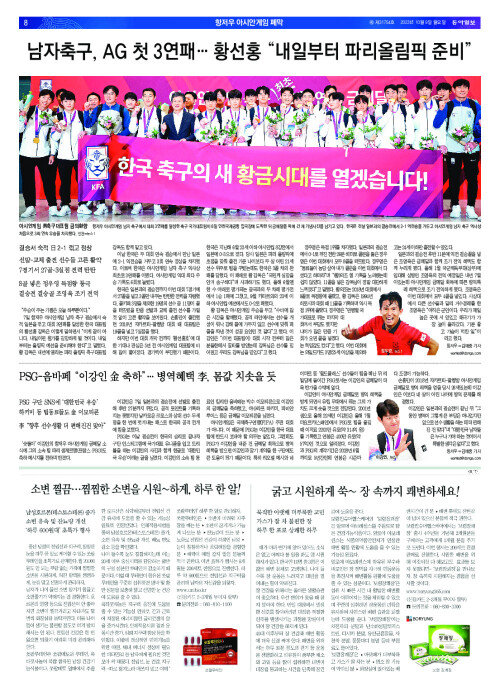 남자축구, AG 첫 3연패… 황선홍 “내일부터 파리올림픽 준비”