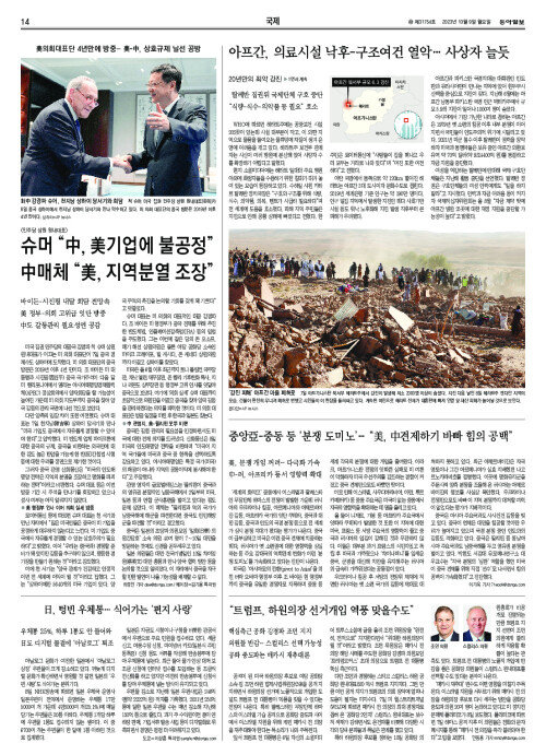 슈머 “中, 美기업에 불공정”, 中매체 “美, 지역분열 조장”
