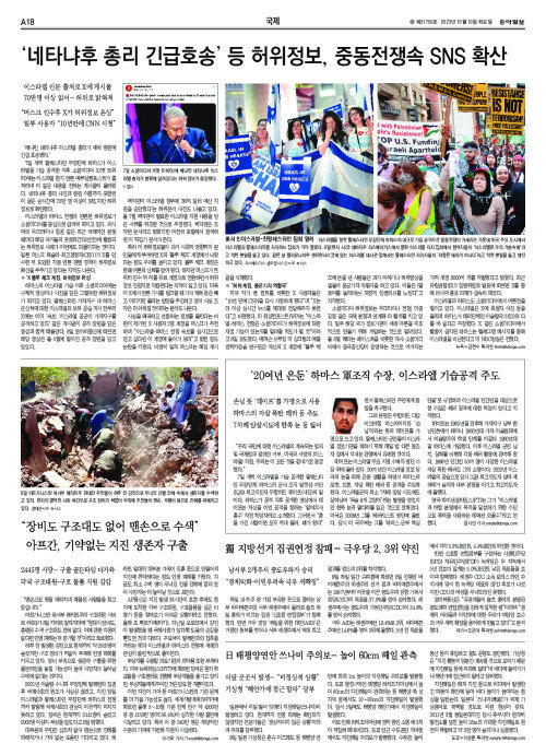전쟁 이틀새 사망자 1200여명-부상자 5000여명… 이스라엘 150명 피랍, 팔레스타인 12만명 난민