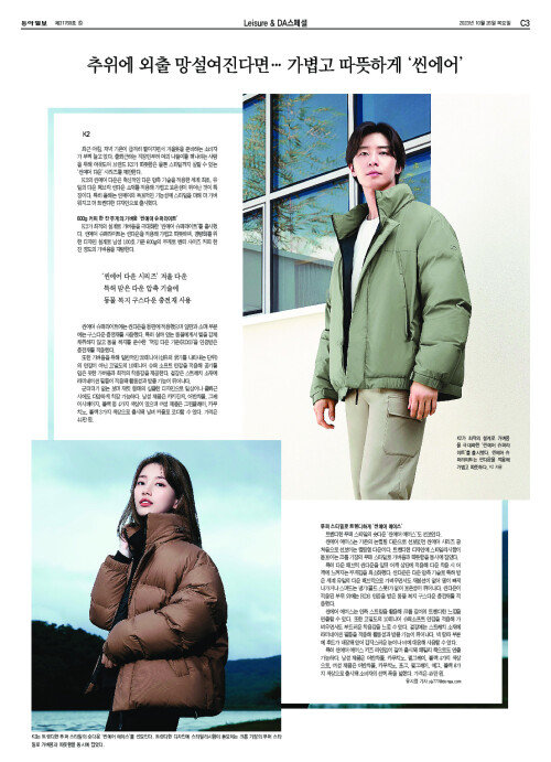 추위에 외출 망설여진다면… 가볍고 따뜻하게 ‘씬에어’