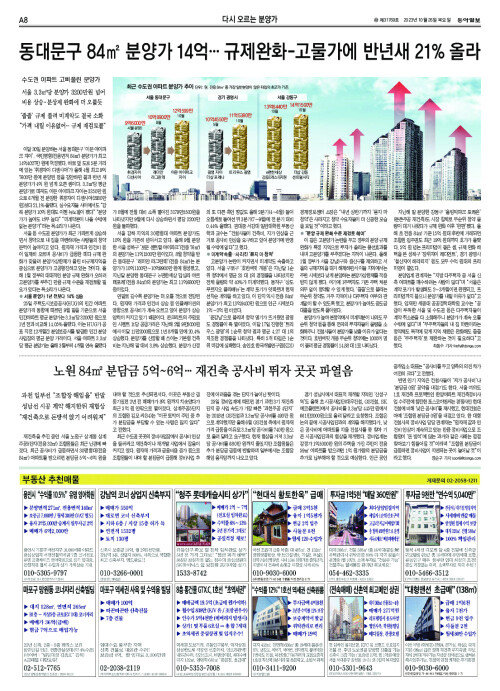 동대문구 84㎡ 분양가 14억… 규제완화-고물가에 반년새 21% 올라