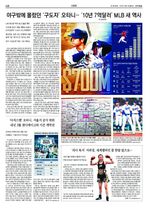 ‘다저스맨’ 오타니, 서울서 공식 데뷔… 내년 3월 샌디에이고와 시즌 개막전
