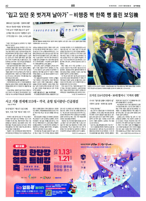 “입고 있던 옷 벗겨져 날아가”… 비행중 벽 한쪽 뻥 뚫린 보잉機