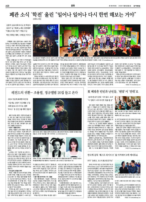폐관 소식 ‘학전’ 울린 “일어나 일어나 다시 한번 해보는 거야”