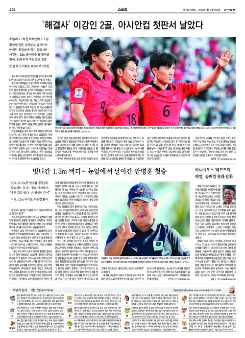 ‘해결사’ 이강인 2골, 아시안컵 첫판서 날았다