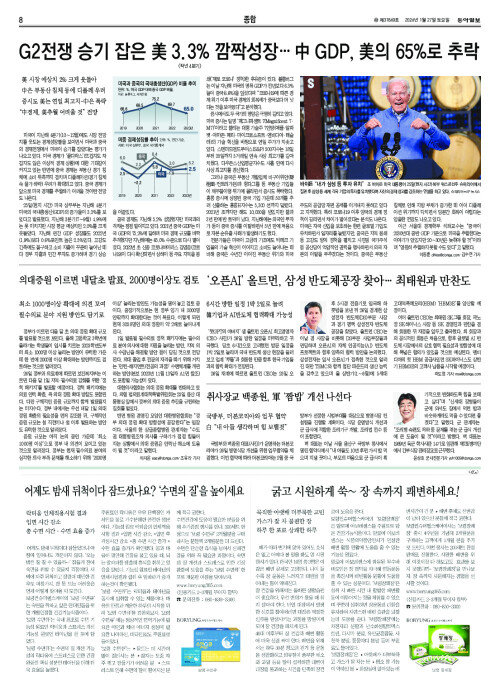 G2전쟁 승기 잡은 美 3.3% 깜짝성장… 中 GDP, 美의 65%로 추락