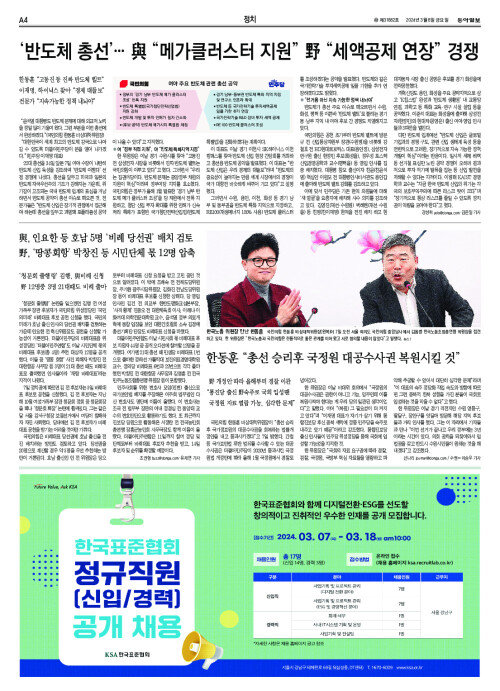 ‘반도체 총선’… 與 “메가클러스터 지원” 野 “세액공제 연장” 경쟁