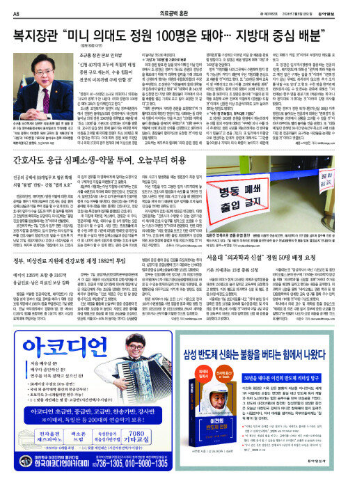 [단독]복지장관 “미니 의대도 정원 100명은 돼야… 지방대 중심 배분”