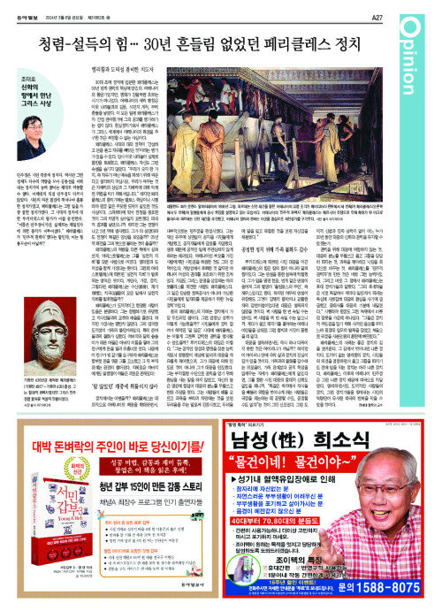 청렴-설득의 힘… 30년 흔들림 없었던 페리클레스 정치[조대호 신화의 땅에서 만난 그리스 사상]