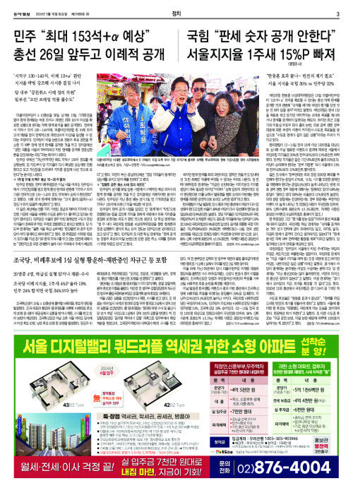 민주 “최대 153석+α 예상”… 총선 26일 앞두고 이례적 공개