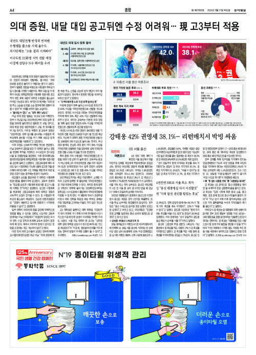 강태웅 42% 권영세 38.1%… 리턴매치서 박빙 싸움 [격전지 여론조사]