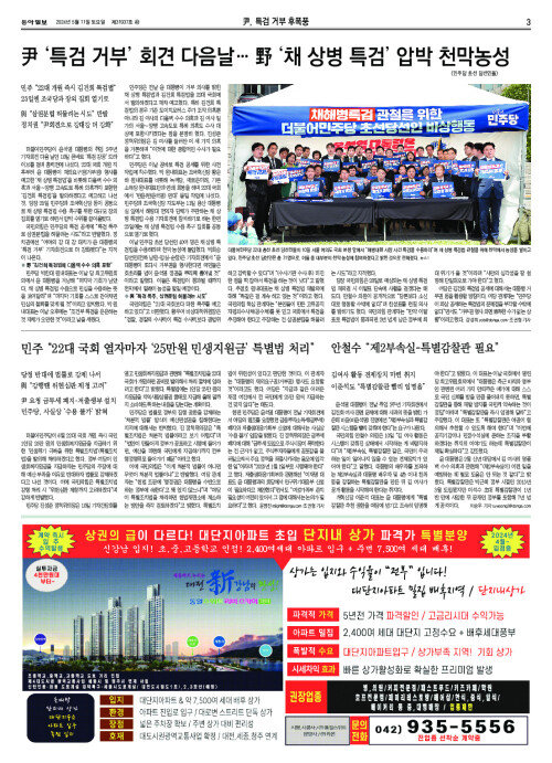 尹 ‘특검 거부’ 회견 다음날… 野 ‘채 상병 특검’ 압박 천막농성