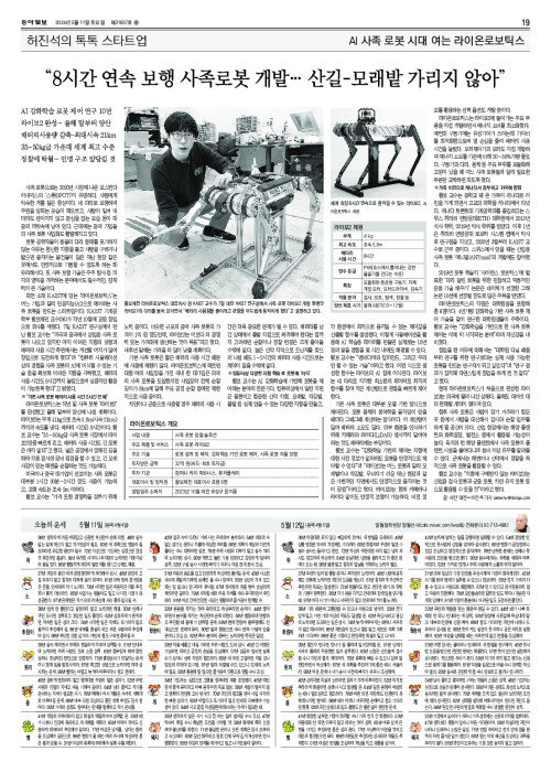 “8시간 연속 보행 사족로봇 개발… 산길-모래밭 가리지 않아”[허진석의 톡톡 스타트업]