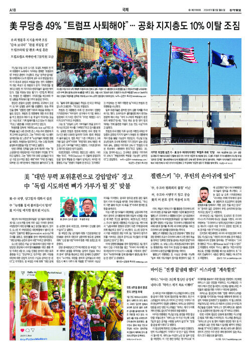 美 무당층 49% “트럼프 사퇴해야”… 공화 지지층도 10% 이탈 조짐