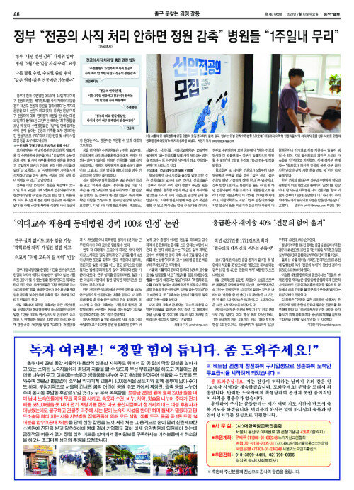 정부 “전공의 사직 처리 안하면 정원 감축” 병원들 “1주일내 무리”