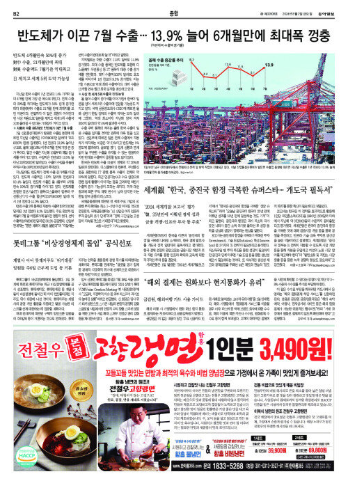 반도체가 이끈 7월 수출… 13.9% 늘어 6개월만에 최대폭 껑충