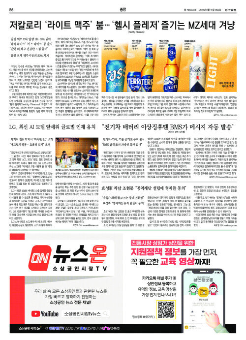 저칼로리 ‘라이트 맥주’ 붐… ‘헬시 플레저’ 즐기는 MZ세대 겨냥