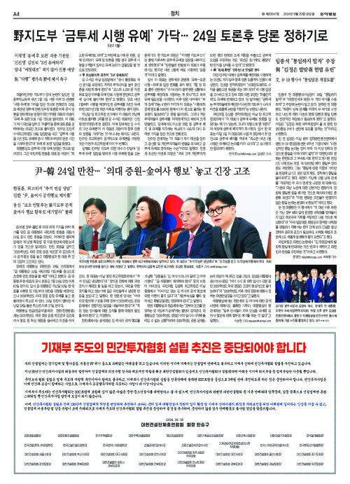 尹-韓 24일 만찬… ‘의대 증원-金여사 행보’ 놓고 긴장 고조
