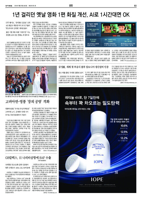 1년 걸리던 옛날 영화 1편 화질 개선, AI로 1시간대면 OK