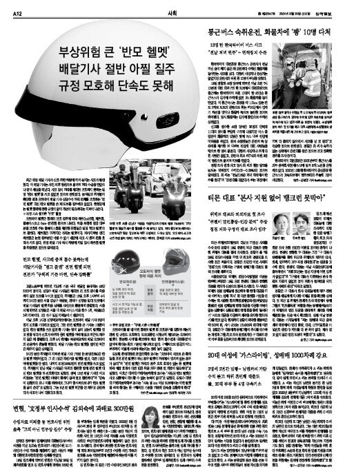 부상위험 큰 ‘반모 헬멧’… 배달기사 절반 아찔 질주, 규정 모호해 단속도 못해