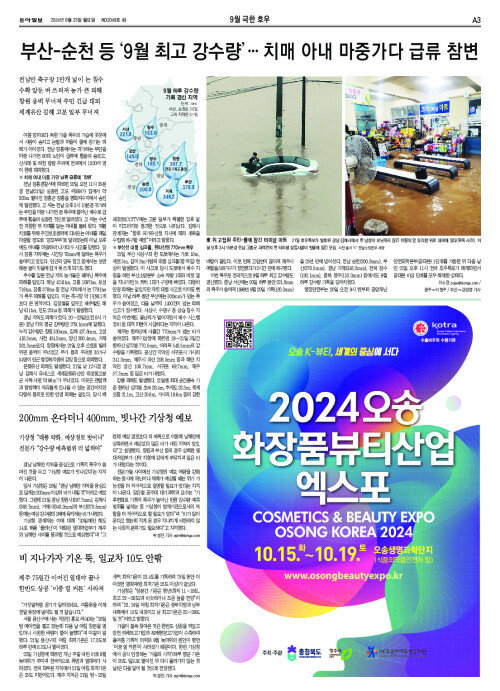 부산-순천 등 ‘9월 최고 강수량’… 치매 아내 마중가다 급류 참변
