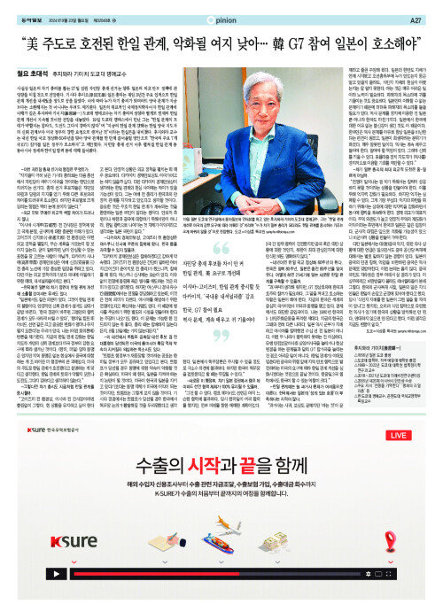 [월요 초대석]“美 주도로 호전된 한일 관계, 악화될 여지 낮아… 韓 G7 참여 일본이 호소해야”