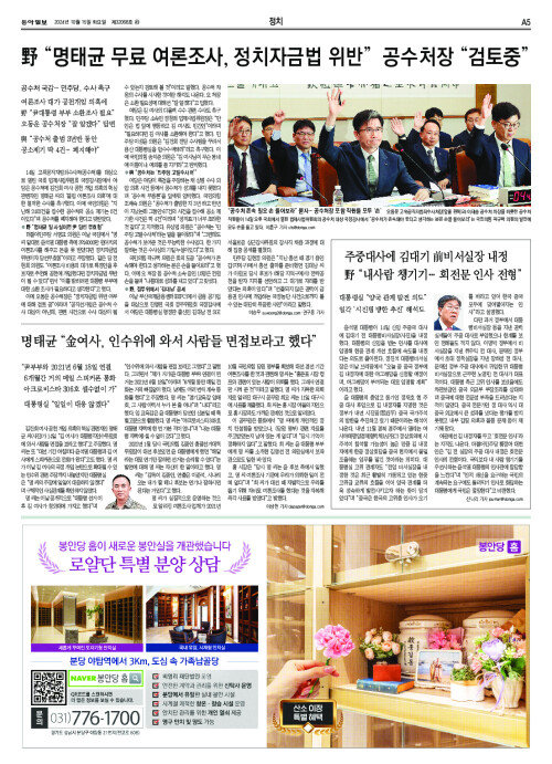 野 “명태균 무료 여론조사, 정치자금법 위반” 공수처장 “검토중”
