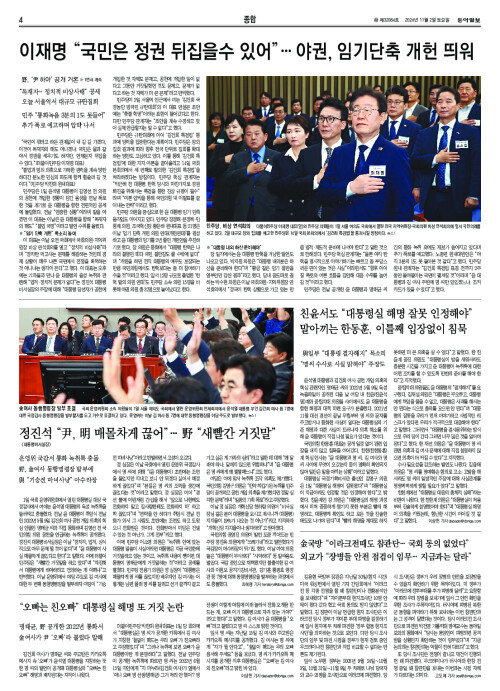 野지도부 “탄핵의 강 또 건너야할지도”… ‘尹 하야’ 공개 거론