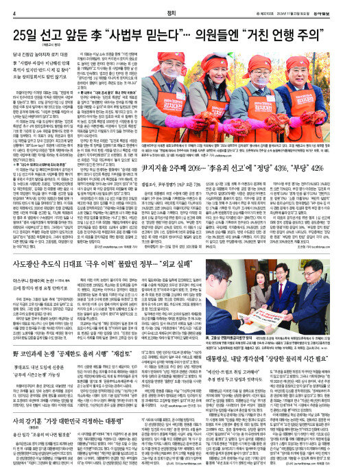 尹지지율 2주째 20%… ‘李유죄 선고’에 “정당” 43%, “부당” 42%