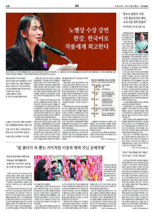 노벨상 수상 강연… 한강, 한국어로 작품세계 회고한다