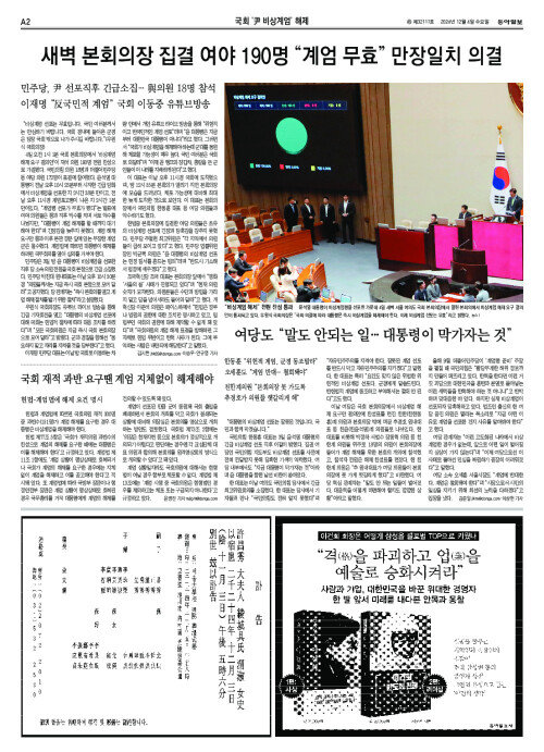 尹 한밤 비상계엄… 국회, 2시간만에 해제