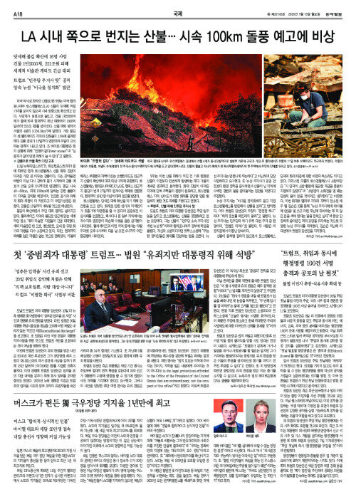 LA 시내 쪽으로 번지는 산불… 시속 100㎞ 돌풍 예고에 비상