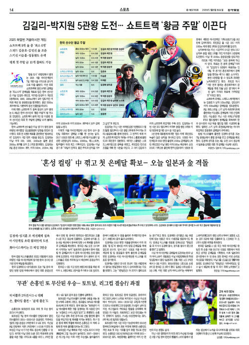 김길리-박지원 5관왕 도전… 쇼트트랙 ‘황금 주말’ 이끈다